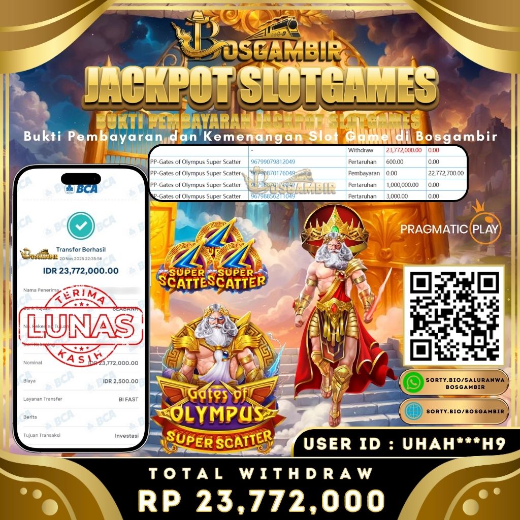 Selamat kepada UserId: UHAH***H9 yang berhasil meraih kemenangan besar sebesar Rp23.772.000 dari permainan Slot Games PP – Gates of Olympus Super Scatter di BOSGAMBIR! Setelah mengajukan penarikan dana, dalam waktu hanya 5–10 menit pihak BOSGAMBIR langsung memproses dan mentransfer seluruh kemenangan ke rekening pemenang hingga berhasil dicairkan. Bukti pembayaran yang kami tampilkan merupakan dokumen sah dan valid yang diambil langsung dari notifikasi transaksi resmi bank tujuan. Terima kasih kepada pemenang yang telah mempercayakan BOSGAMBIR sebagai bandar terpercaya yang selalu membayar semua kemenangan member secara penuh tanpa potongan. Masih ragu dengan BOSGAMBIR? Di tengah maraknya situs judi online abal-abal, BOSGAMBIR hadir sebagai bandar slot dan togel online yang transparan, cepat, dan konsisten membayar—tanpa bertele-tele dan tanpa penundaan. Berapa pun nilai kemenangan Anda, kami jamin akan dibayarkan 100%. Segera bergabung dan raih kemenangan Anda berikutnya hanya di https://www.bosgambir.org
