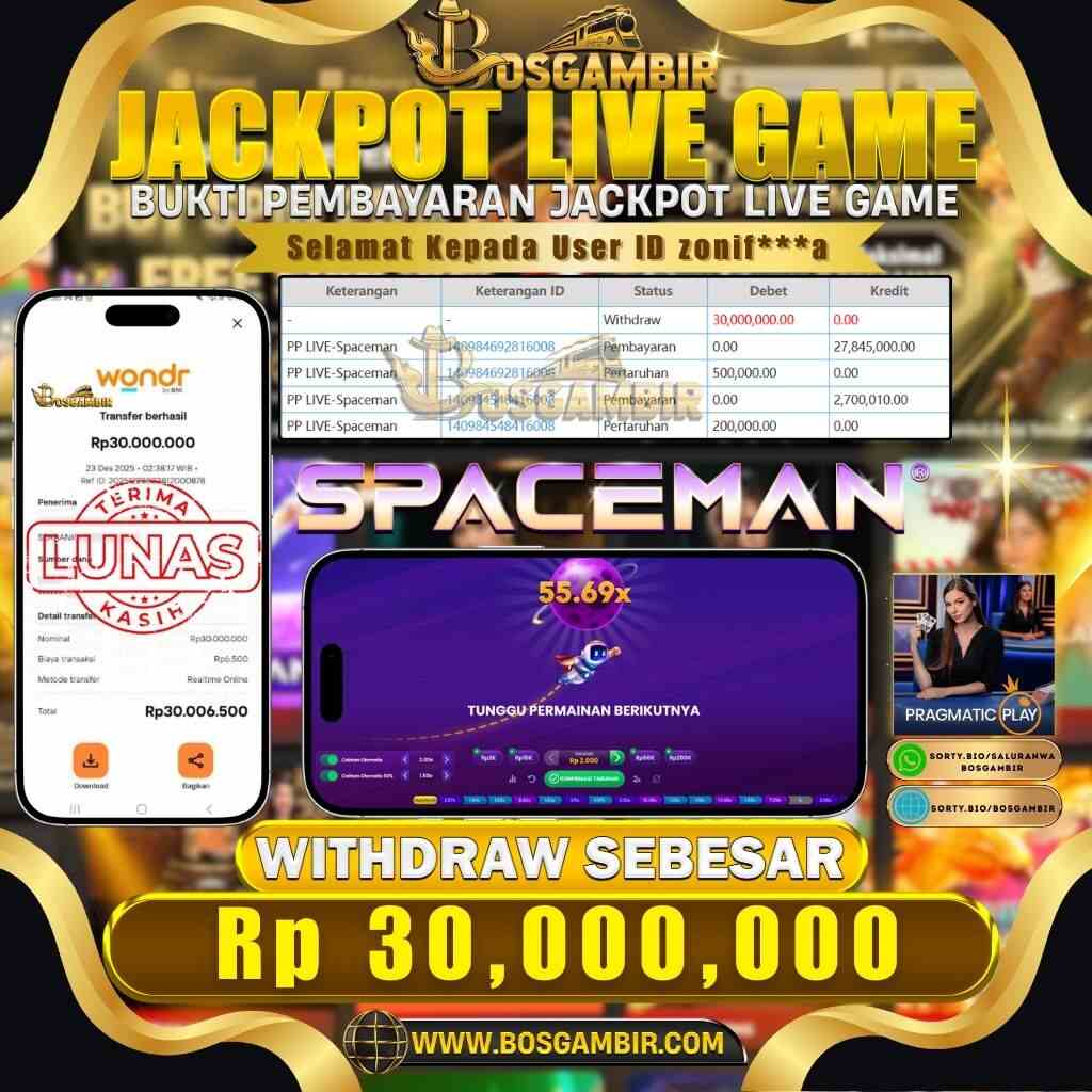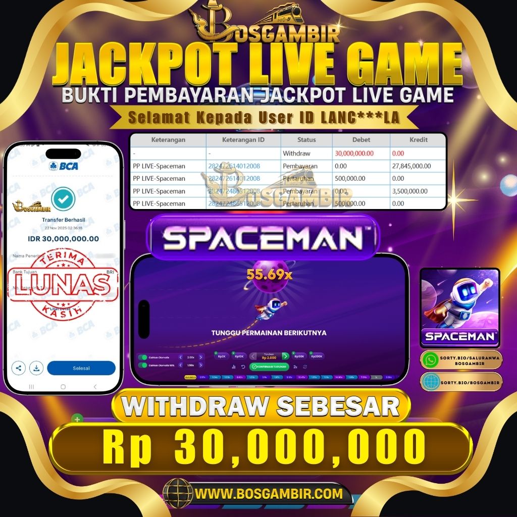 Bukti Pembayaran Jackpot Livegame PP LIVE-Spaceman Rp 30,000,000