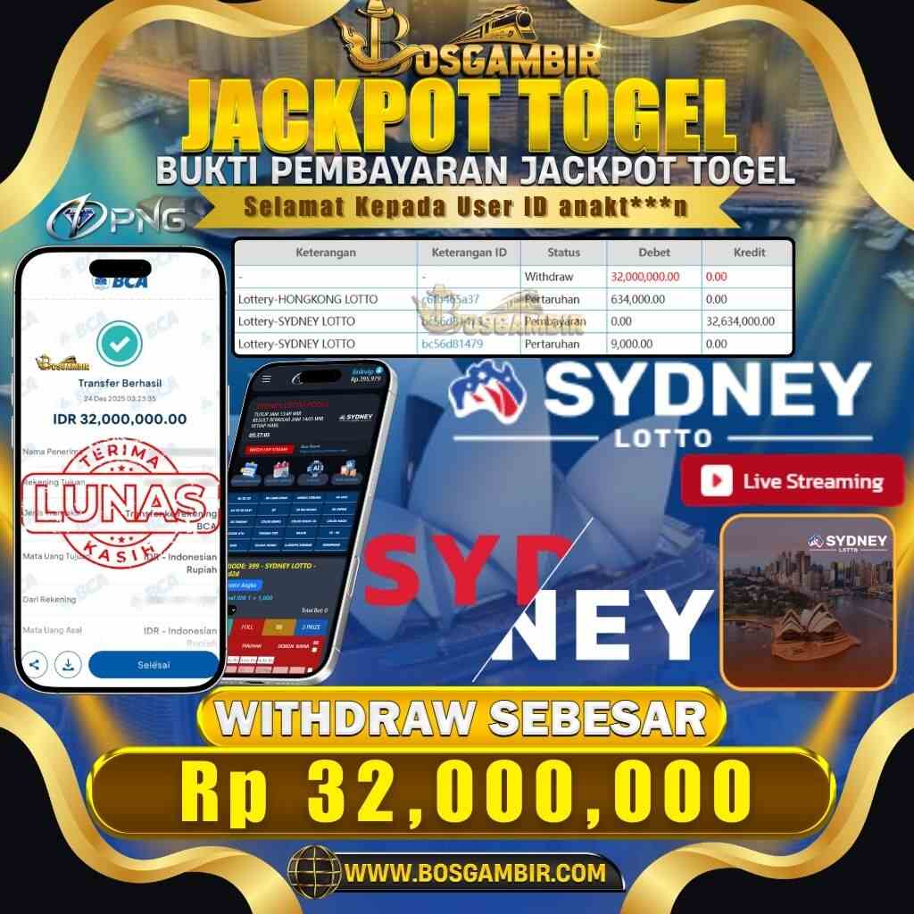 Bukti Pembayaran Jackpot Togel Lottery-SYDNEY LOTTO Rp 32,000,000
