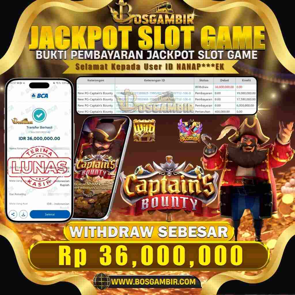 Bukti Pembayaran Jackpot Slotgame New PG-Captain's Bounty Rp 36,000,000
