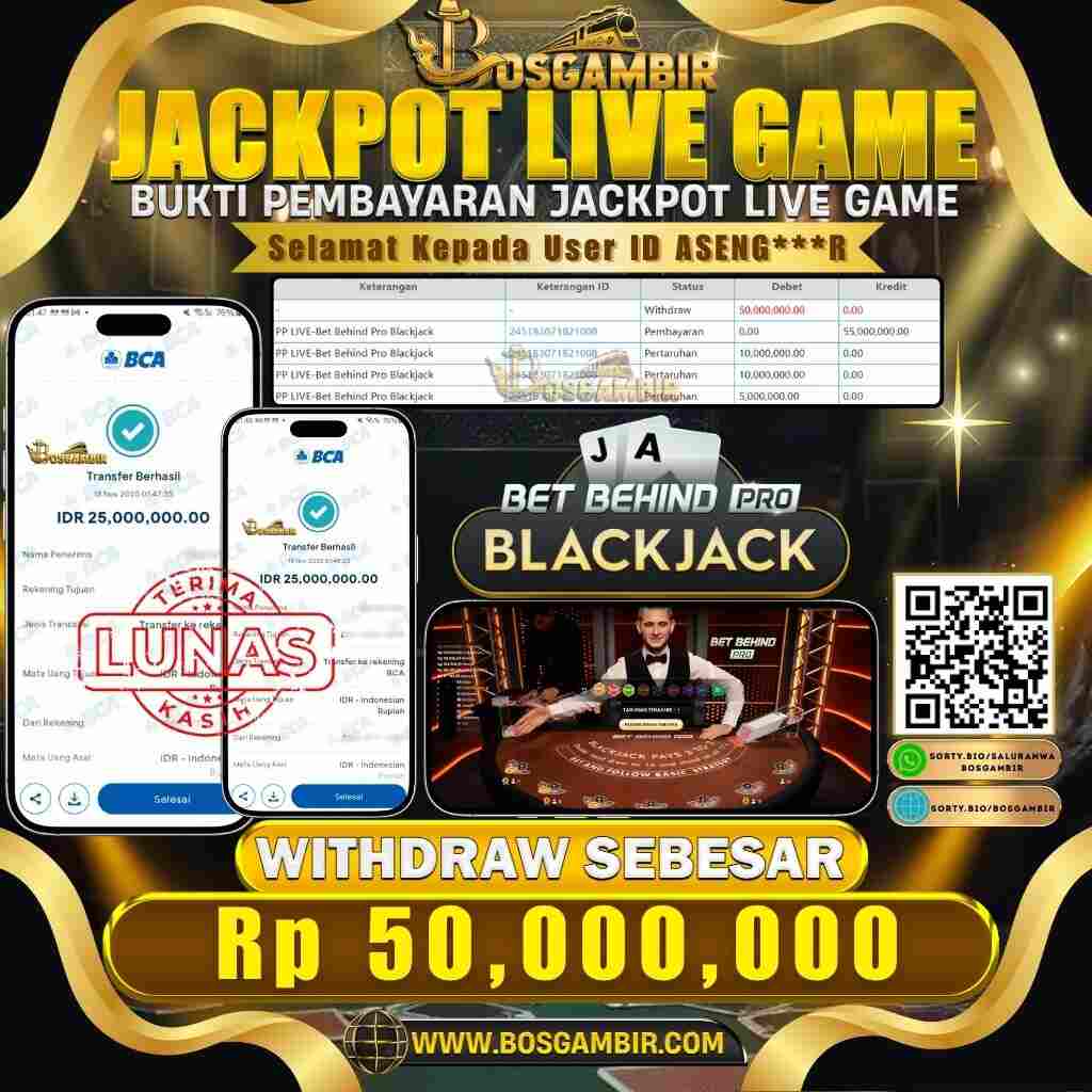Bukti Pembayaran Jackpot Livegame PP LIVE-Bet Behind Pro Blackjack Rp 50,000,000