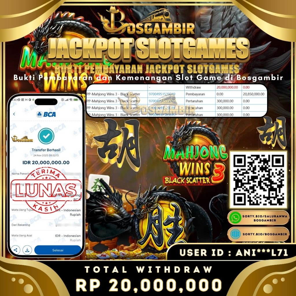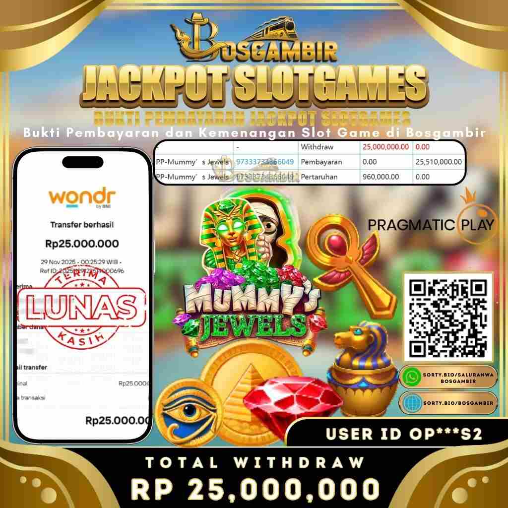 Selamat kepada User ID OP***S2 yang sukses meraih jackpot fantastis Rp25.000.000 dari Slot Game PP – Mummy s jewels di BOSGAMBIR. Semua kemenangan di sini selalu dibayar penuh tanpa potongan, langsung cair ke rekening dengan sistem cepat, aman, dan transparan. Tidak heran BOSGAMBIR menjadi pilihan utama komunitas pemenang yang setiap hari membuktikan peluang cuan nyata dengan sensasi permainan seru dan hasil yang nyata. Kini giliran Anda yang membuktikan sendiri, rasakan jackpot besar dan pengalaman terbaik hanya di https://www.bosgambir.org