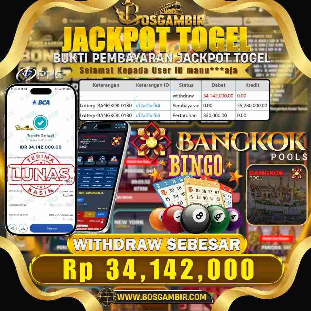 Bukti Pembayaran Jackpot Togel Lottery-BANGKOK 0130 Rp 34,142,000