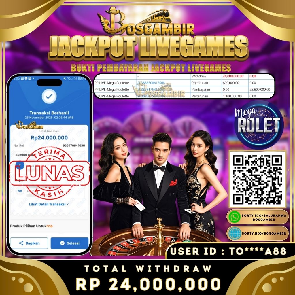 Selamat kepada UserId: TO****88 yang berhasil meraih kemenangan besar sebesar Rp24.000.000 dari permainan Live Games PP LIVE – Mega Roulette di BOSGAMBIR! Setelah mengisi formulir withdraw, dalam waktu hanya 5–10 menit pihak BOSGAMBIR langsung memproses dan mentransfer seluruh dana kemenangan ke rekening pemenang hingga berhasil dicairkan. Bukti pembayaran yang kami tampilkan merupakan dokumen sah dan valid yang diambil langsung dari notifikasi transaksi resmi bank tujuan. Terima kasih kepada pemenang yang telah mempercayakan BOSGAMBIR sebagai bandar terpercaya yang selalu membayar semua kemenangan member secara penuh tanpa potongan. Masih ragu dengan BOSGAMBIR? Di tengah maraknya situs judi online yang tidak jelas, BOSGAMBIR hadir sebagai bandar slot dan togel online yang transparan, cepat, dan tanpa bertele-tele—karena berapa pun nilai kemenangan Anda, kami jamin akan dibayarkan 100%. Segera bergabung dan raih kemenangan Anda berikutnya hanya di https://www.bosgambir.org
