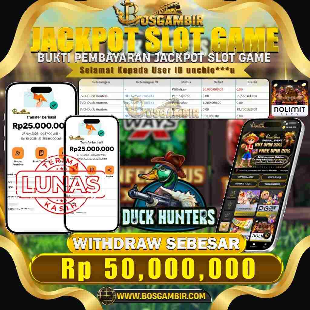 Selamat kepada UserId: unchle***u yang sukses mengamankan kemenangan sebesar Rp50.000.000 melalui permainan Slot Game EVO – Duck Hunters di BOSGAMBIR! Begitu formulir withdraw diajukan, tim kami langsung memproses dan mentransfer seluruh dana ke rekening pemenang dalam waktu sangat singkat—hanya 5 hingga 10 menit. Setiap bukti pembayaran yang kami tampilkan merupakan dokumen resmi yang diambil langsung dari notifikasi transaksi bank penerima, sehingga sah, akurat, dan dapat diverifikasi. Terima kasih kepada pemenang yang telah memilih BOSGAMBIR sebagai platform andalan, sejalan dengan komitmen kami untuk selalu melunasi setiap kemenangan secara penuh tanpa potongan. Di tengah maraknya situs judi online yang tidak jelas, BOSGAMBIR menonjol berkat layanan yang andal, sistem yang transparan, dan jaminan pembayaran instan—karena bagi kami, setiap kemenangan wajib dibayar 100% tanpa syarat. Jangan lewatkan kesempatan menang Anda berikutnya—main dan raih kemenangan nyata hanya di https://www.bosgambir.org