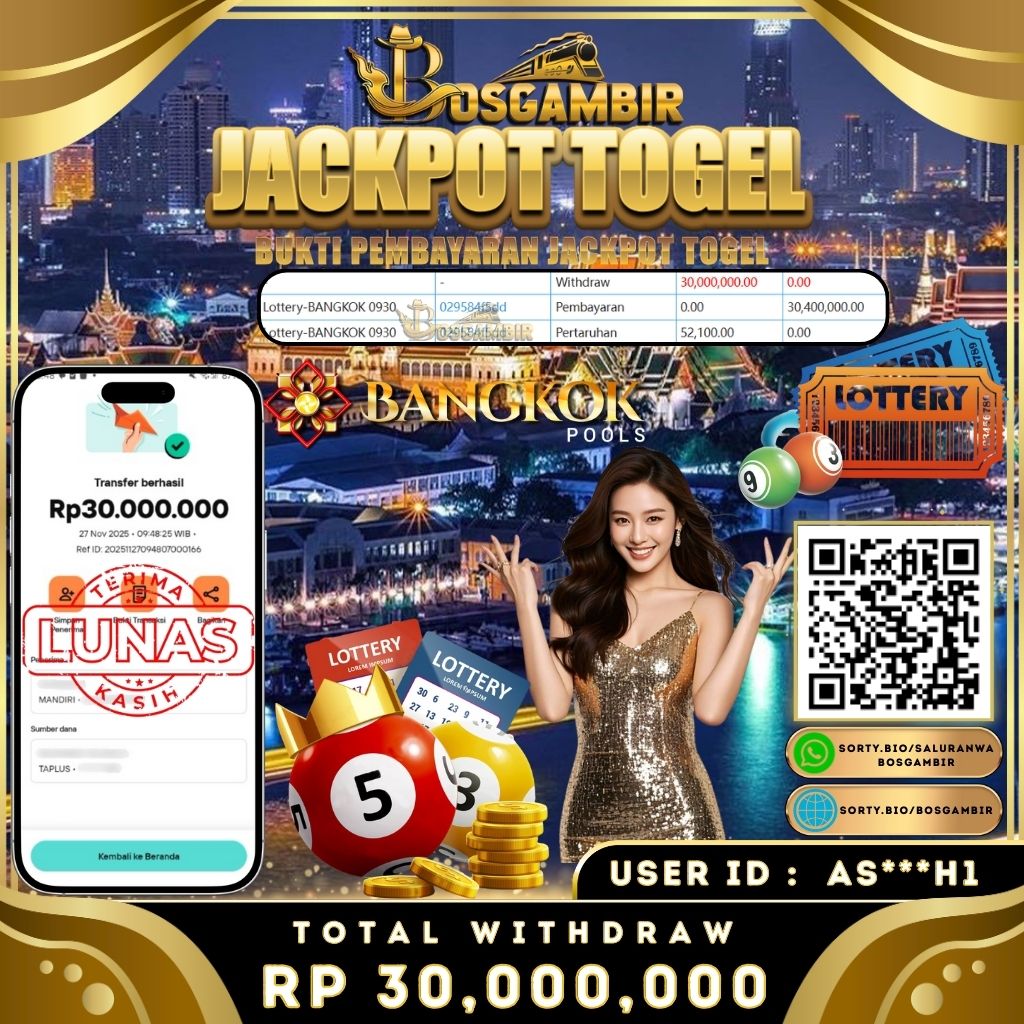 Bukti Pembayaran Jackpot Togel Lottery-BANGKOK 0930 Rp 30,000,000