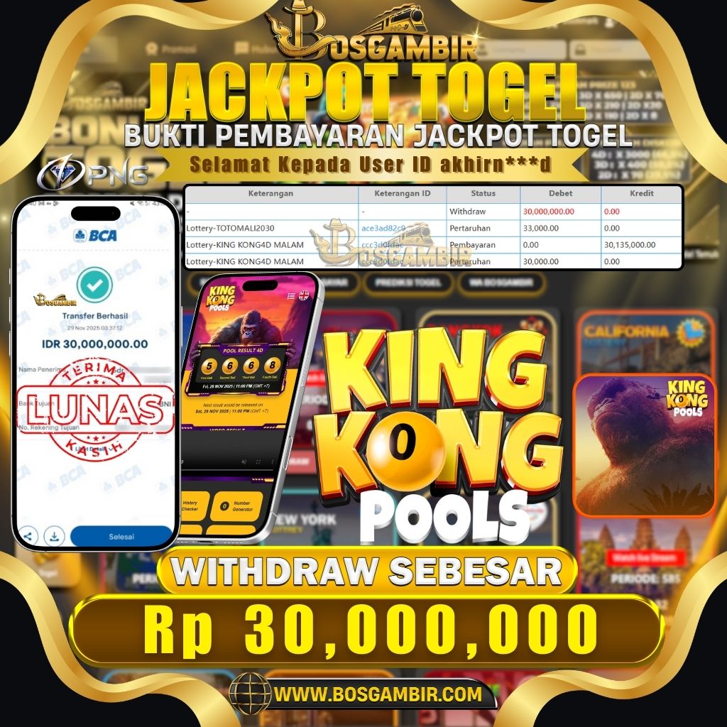 Bukti Pembayaran Jackpot Togel Lottery-KING KONG4D MALAM Rp 30,000,000