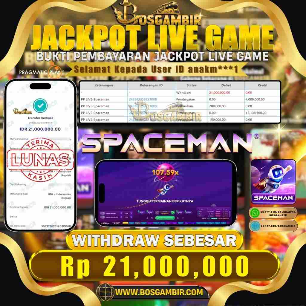 Bukti Pembayan Jackpot Livegame PP LIVE-Spaceman Rp 21,000,000