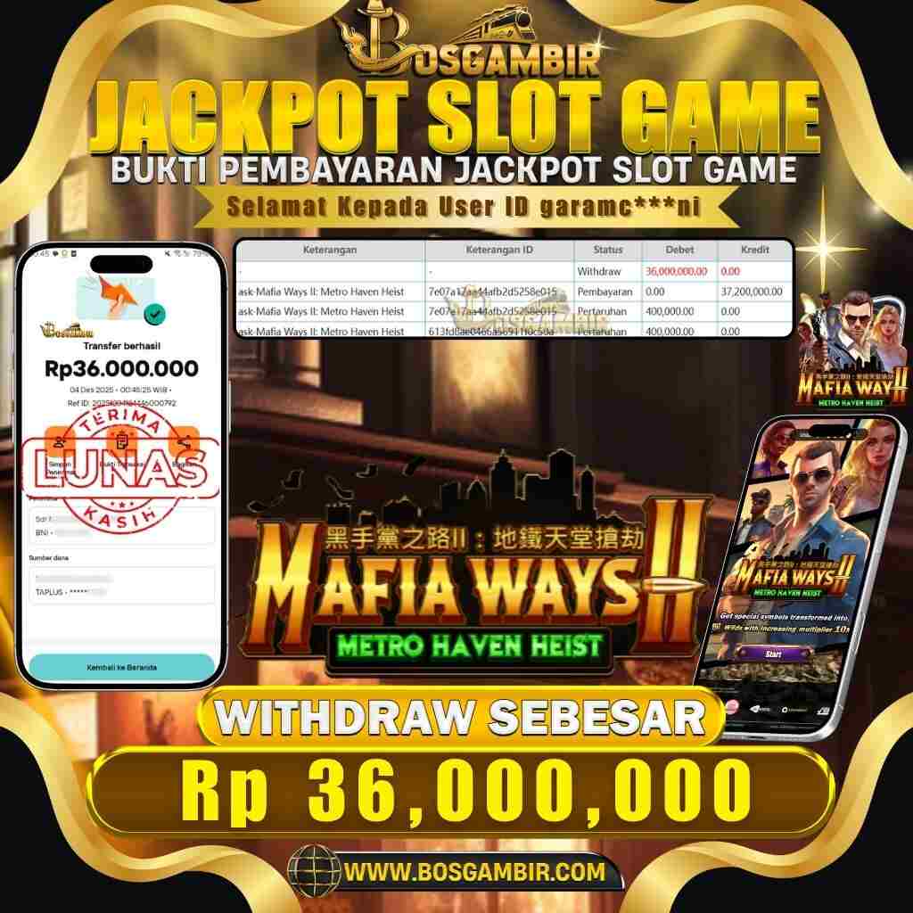 Bukti Pembayaran Jackpot Slotgame ask-Mafia Ways II: Metro Haven Heist Rp 36,000,000