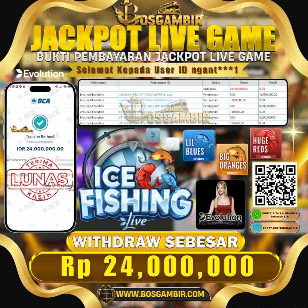 Bukti Pembayaran Jackpot Livegame Evolution IceFishing Rp 24,000,000