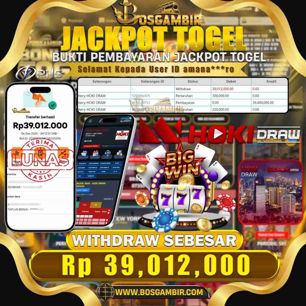 Bukti Pembayaran Jackpot Togel Lottery-HOKI DRAW Rp 39,012,000