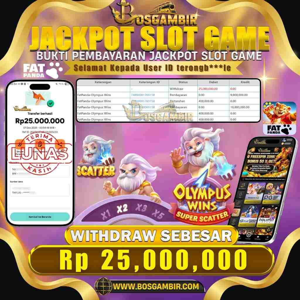 Bukti Pembayaran Jackpot Slotgame FatPanda-Olympus Wins Rp 25,000,000