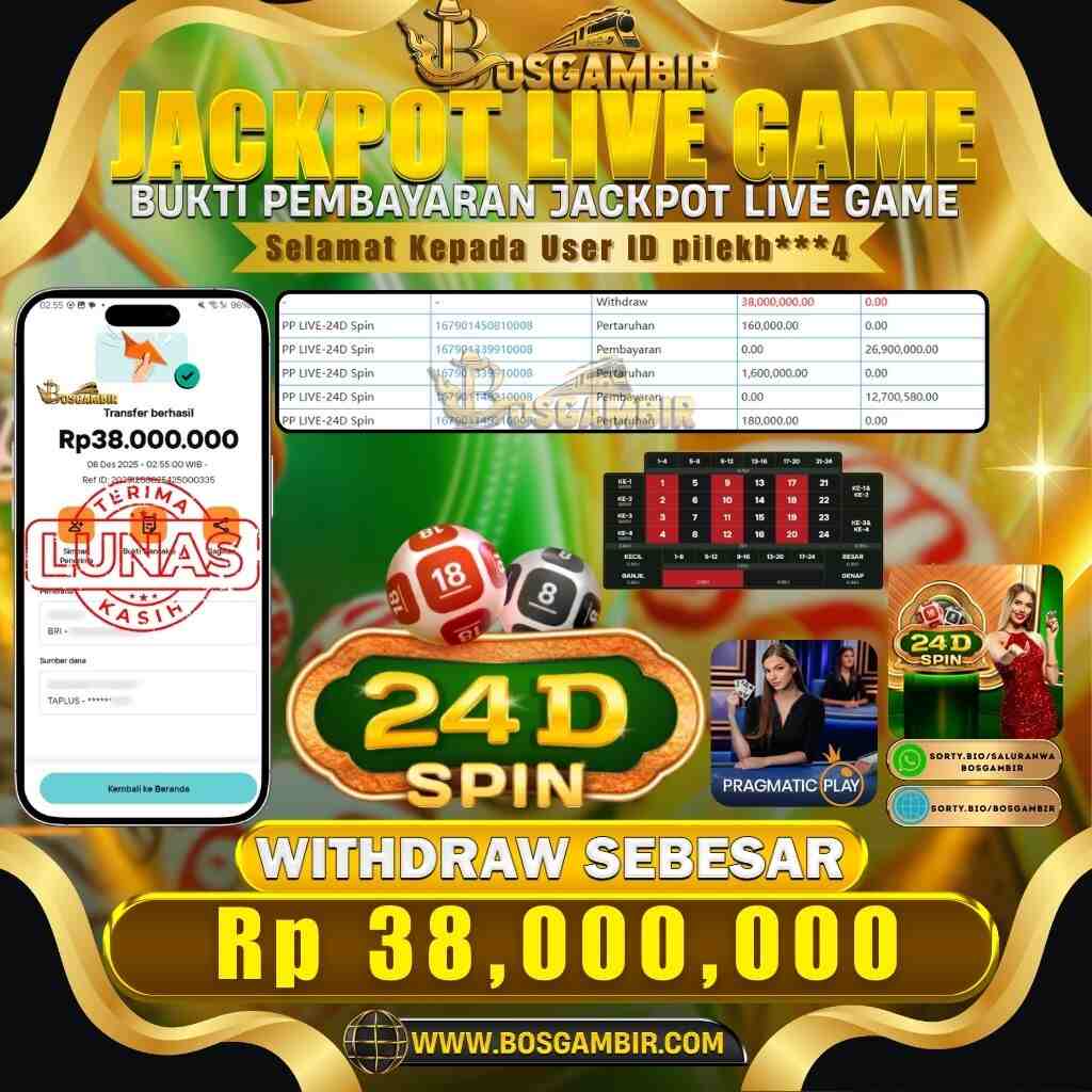 Bukti Pembayaran Jackpot Livegame PP LIVE-24D Spin Rp 38,000,000