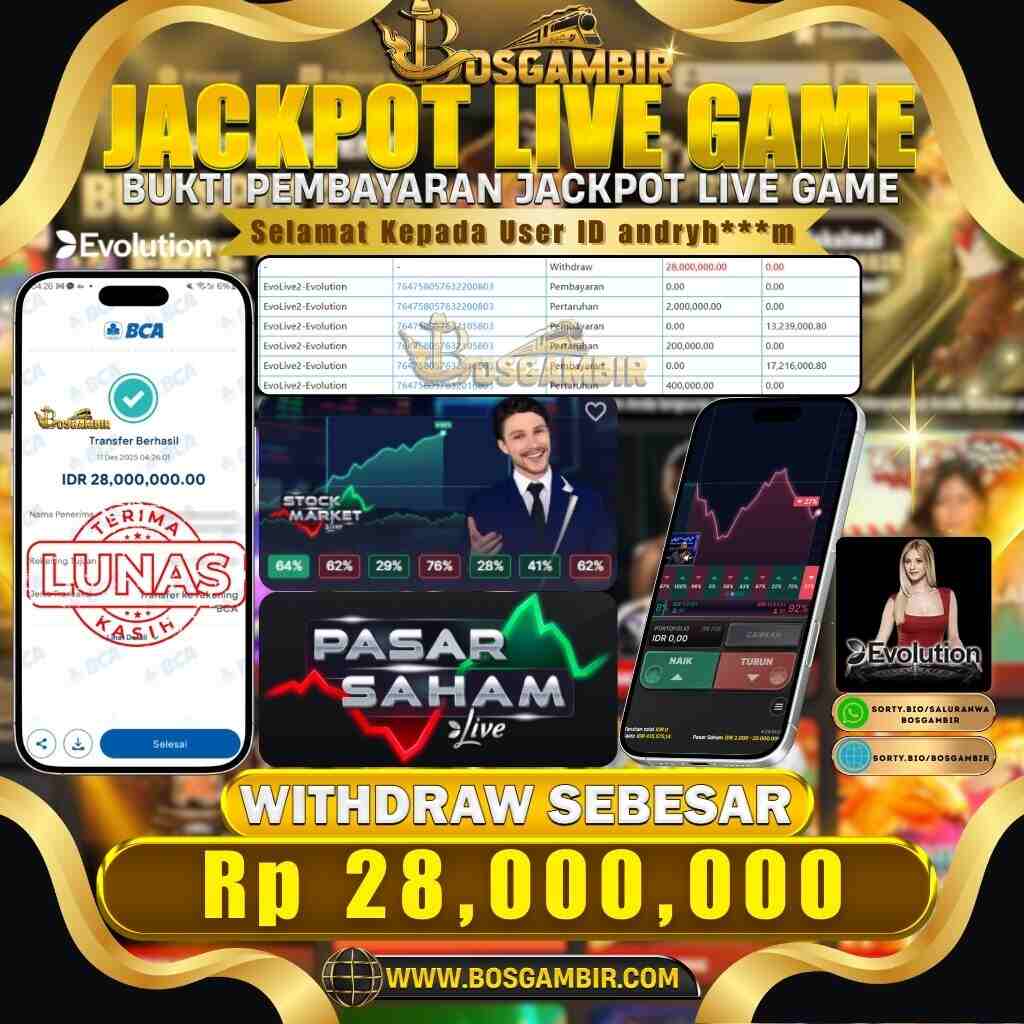 Bukti Pembayaran Jackpot Livegame Evolution Stock Market Rp 28,000,000