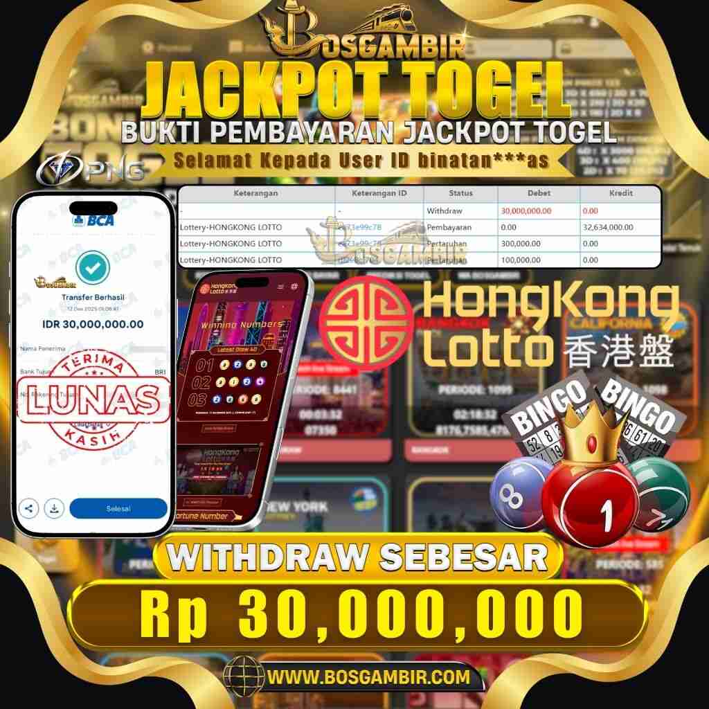 Bukti Pembayaran Jackpot Togel Lottery-HONGKONG LOTTO Rp 30,000,000