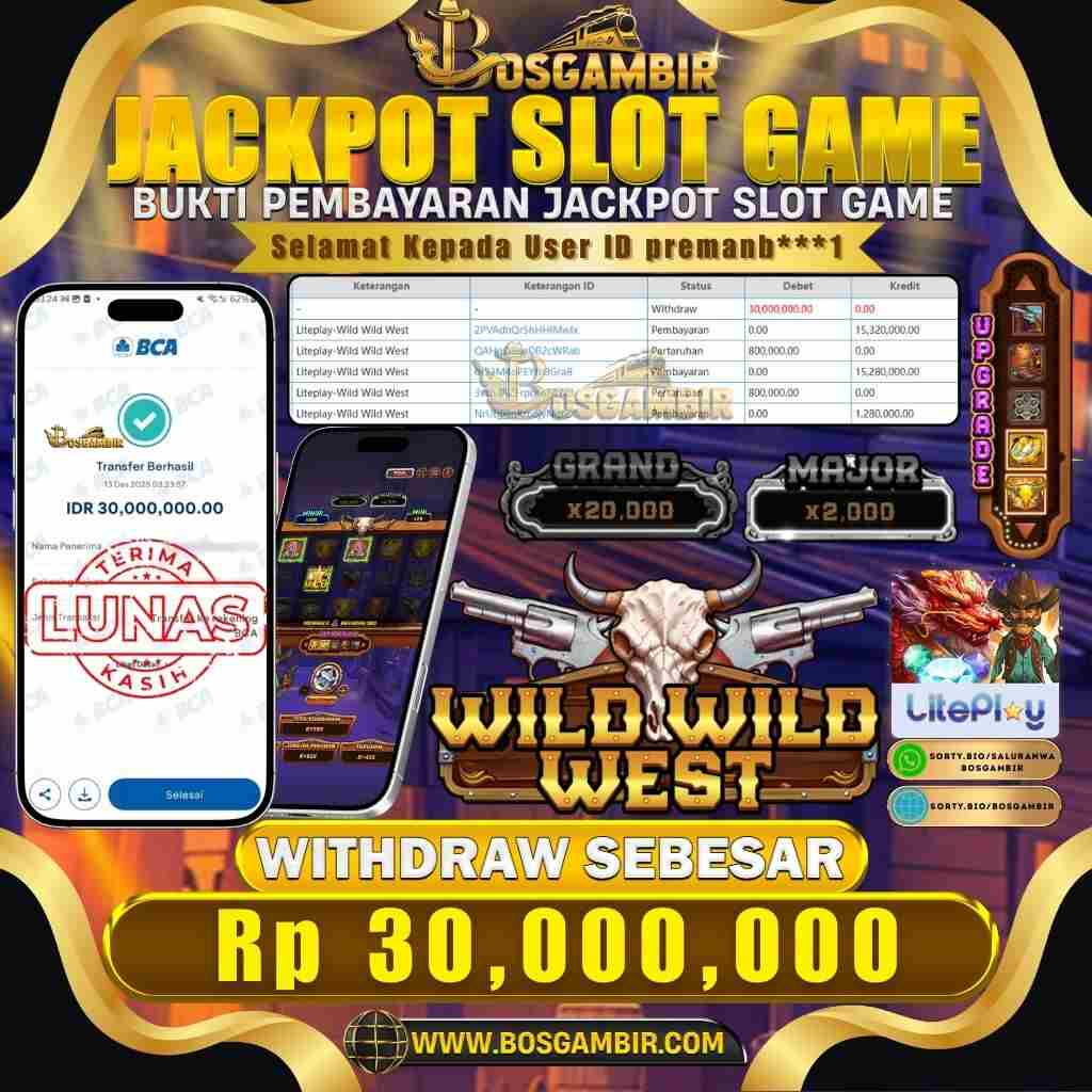 Bukti Pembayaran Jackpot Slotgame Liteplay-Wild Wild West Rp 30,000,000