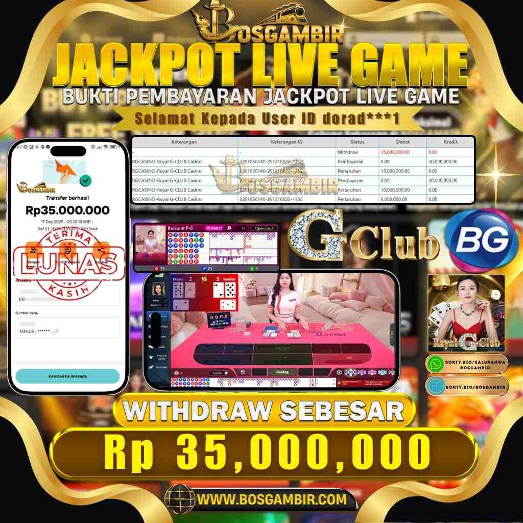 Bukti Pembayaran Jackpot Livegame RGCASINO-Royal G-CLUB Casino Rp 35,000,000