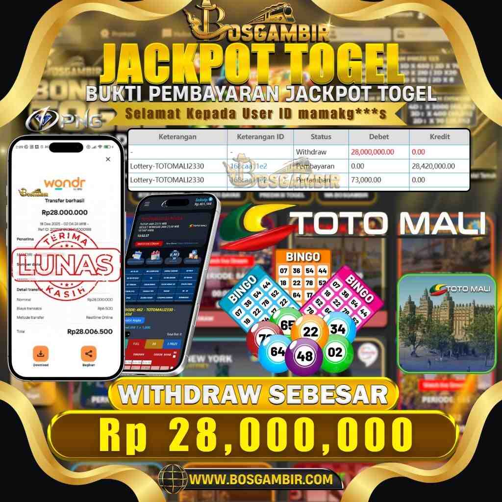 Bukti Pembayaran Jackpot Togel Lottery-TOTOMALI2330 Rp 28,000,000