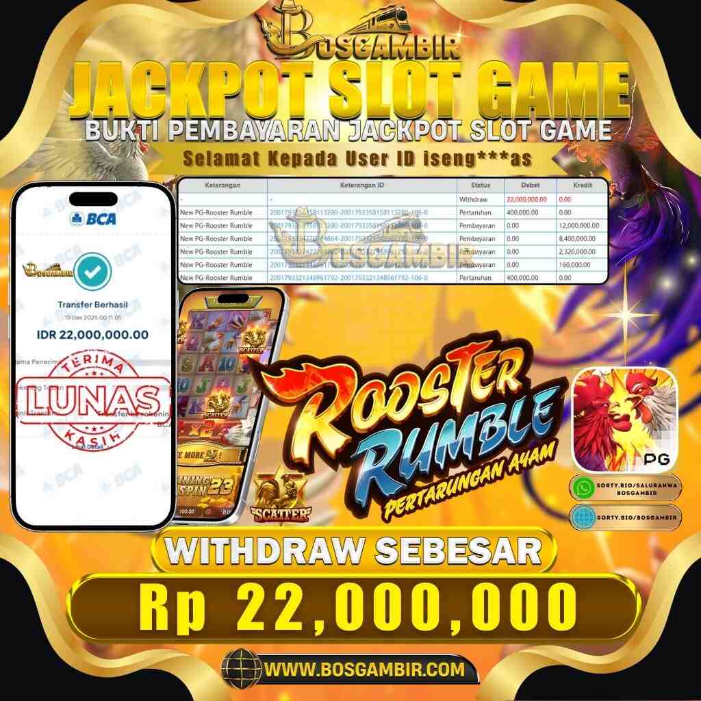 Bukti Pembayaran Jackpot Slotgame New PG-Rooster Rumble Rp 22,000,000