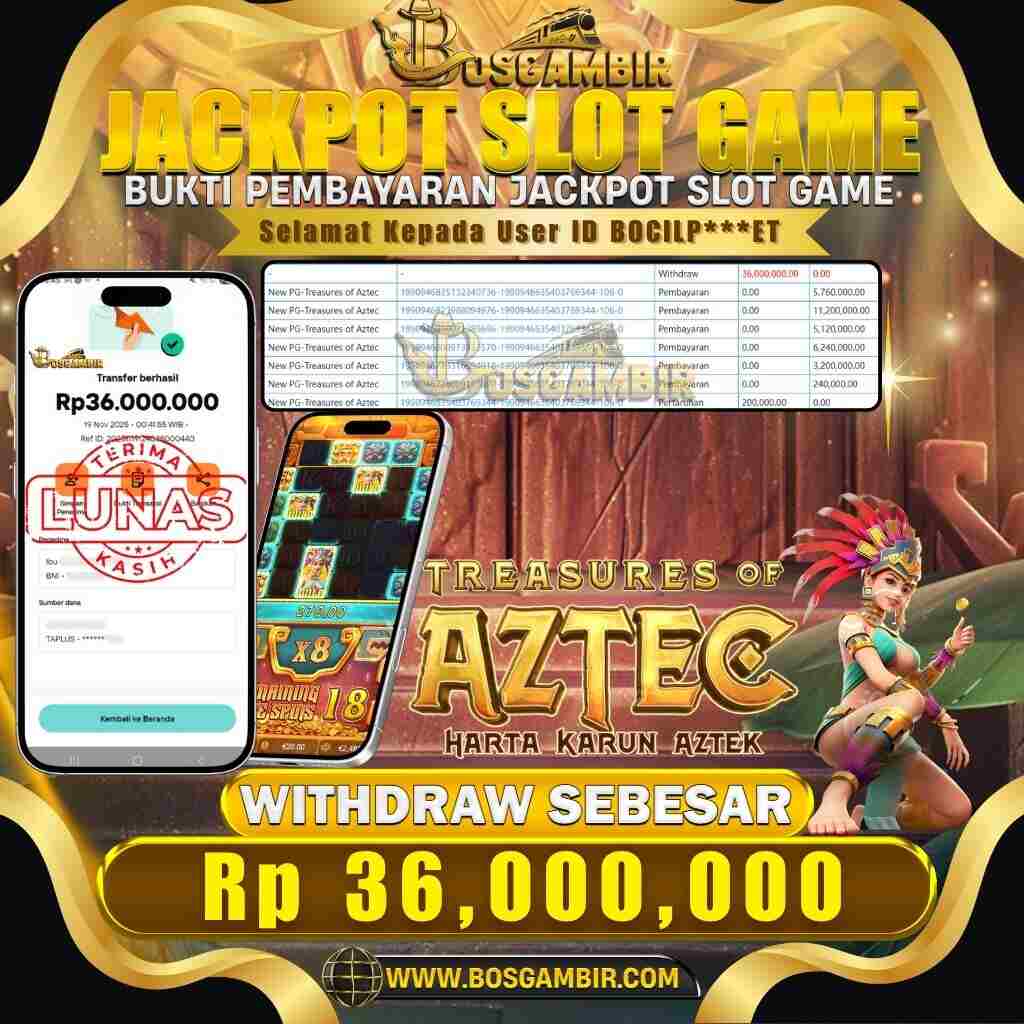 Bukti Pembayaran Jackpot Slotgame New PG-Treasures of Aztec Rp 36,000,000