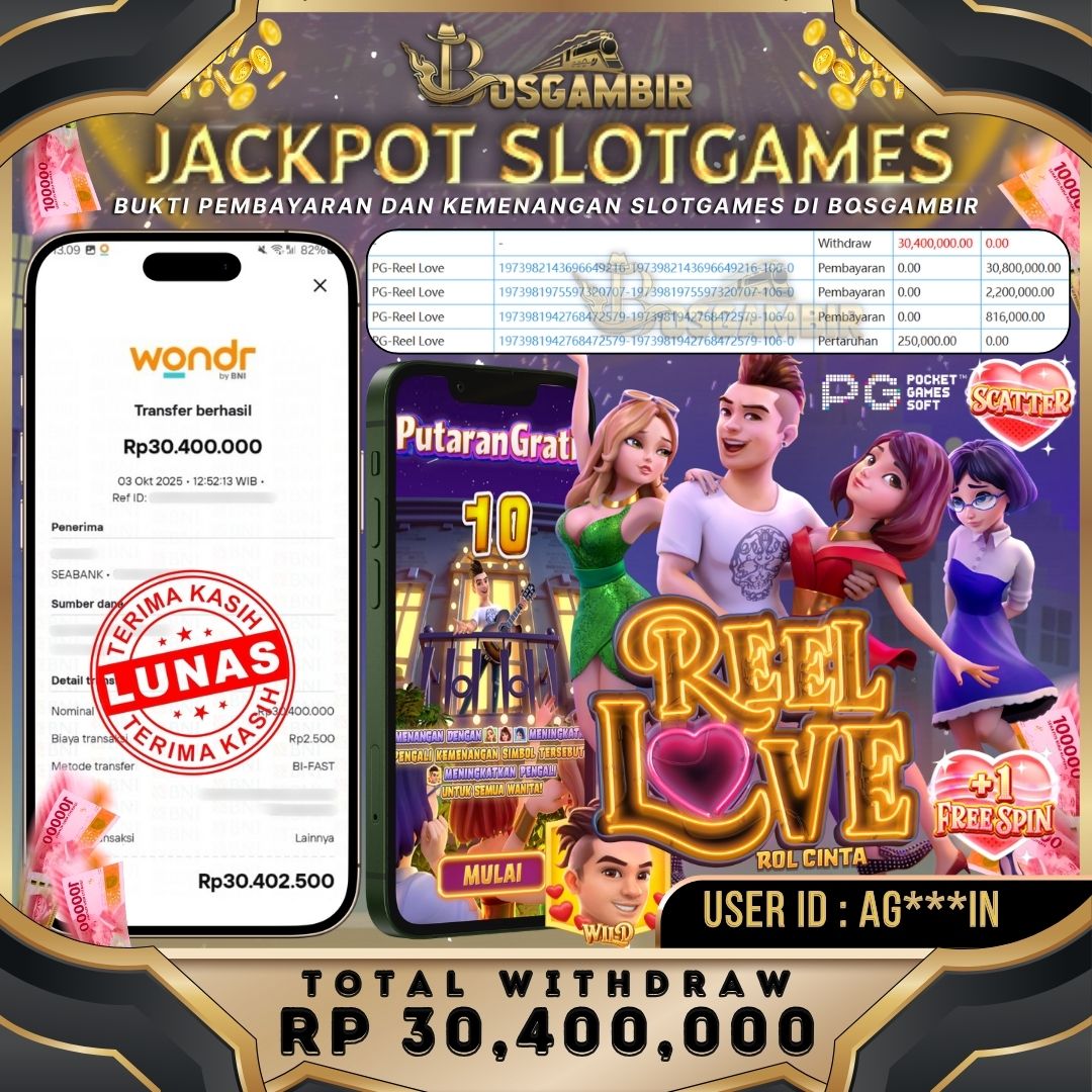 Selamat kepada User ID: AG***IN yang berhasil membuktikan kelasnya dengan meraih kemenangan luar biasa senilai Rp30.400.000 dari permainan slot PG– Reel Love di Bosgambir! Dengan ketekunan dan keberanian, ia sukses menaklukkan setiap tantangan dan menunjukkan bahwa kemenangan besar hanya datang bagi mereka yang bermain cerdas dan penuh keyakinan. Di Bosgambir, semua kemenangan dibayar lunas, tanpa potongan, sebagai bukti nyata komitmen kami terhadap permainan yang fair, aman, dan transparan. Terima kasih atas kepercayaan dan loyalitas Anda. Teruskan permainan favoritmu, dan siapa tahu—giliranmu jadi legenda Bosgambir selanjutnya!segera bergabung dan raih jackpot Anda berikutnya hanya di https://www.bosgambir.org