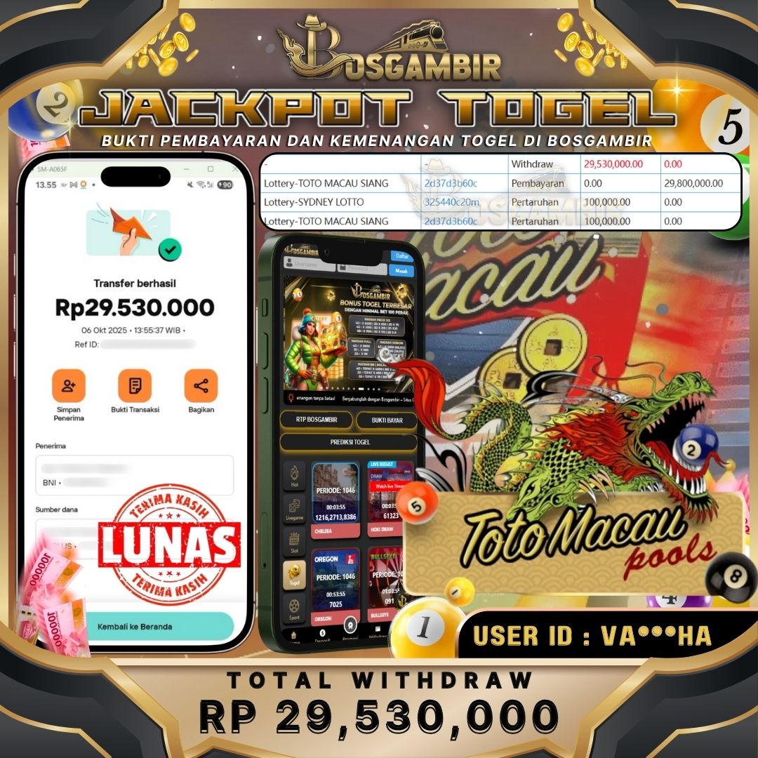 Selamat dan apresiasi setinggi-tingginya untuk User ID: VA***HA yang berhasil membawa pulang kemenangan spektakuler sebesar Rp 29.530.000,- dari permainan TOGEL Lottery– TOTO MACAU SIANG di BOSGAMBIR! Proses withdraw hanya memakan waktu 3–5 menit setelah formulir pengajuan diisi. Setiap bukti pembayaran yang kami berikan 100% resmi, sah, dan valid. BOSGAMBIR selalu menjamin keamanan serta transparansi di setiap transaksi—tanpa potongan tersembunyi, tanpa kecurangan. Kami bangga menjadi pilihan utama para member setia yang menginginkan pengalaman bermain nyaman, fair, dan pastinya cuan maksimal. Jadi, tunggu apa lagi? Gabung sekarang dan buktikan sendiri bahwa di BOSGAMBIR, kemenangan besar bukan cuma mimpi, tapi kenyataan!Segera bergabung dan raih kemenangan Anda berikutnya hanya di https://www.bosgambir.org