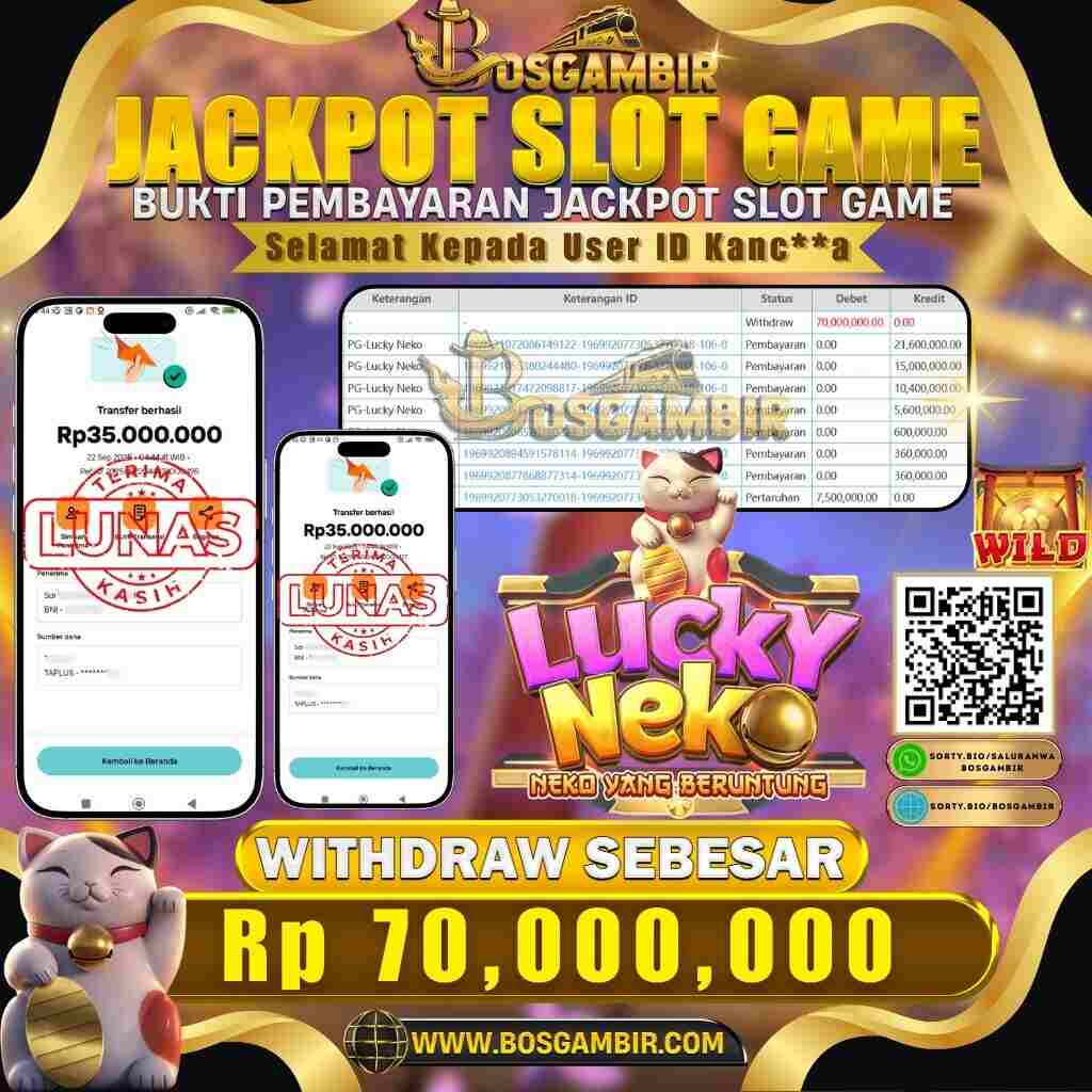 Selamat kepada User ID Kanc**a yang berhasil meraih kemenangan besar Rp70.000.000 dari permainan slot PG – Lucky Neko di Bosgambir, bukti nyata bahwa setiap putaran di sini selalu punya peluang emas untuk membawa pulang saldo tebal karena semua kemenangan dibayar penuh tanpa potongan, cair cepat tanpa drama, dan langsung masuk rekening member, jadi buat kamu yang belum merasakan sensasinya langsung saja main di link resmi https://www.bosgambir.org dan buktikan sendiri kalau di Bosgambir menang itu nyata dan bisa diraih siapa saja.