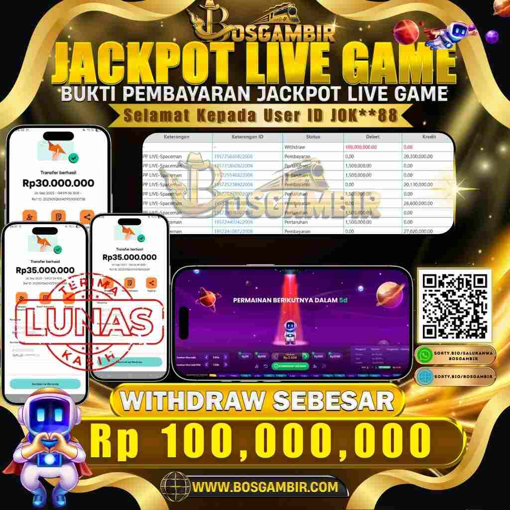 Bukti Pembayaran Jackpot Livegame PP LIVE-Spaceman Rp 100,000,000