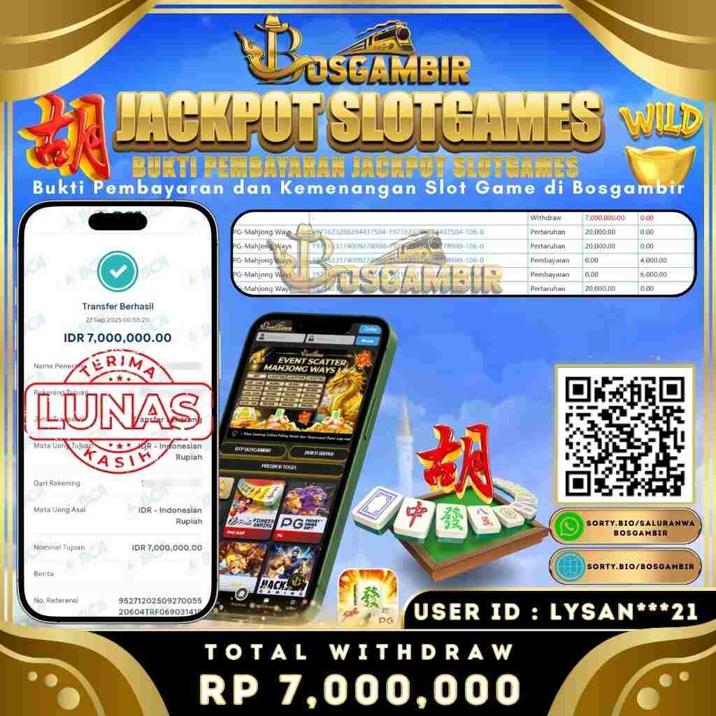 Selamat kepada UserId : lysan***21 yang sukses meraih kemenangan besar sebesar Rp7.000.000 dari permainan SLOT PG – Mahjong Ways di BOSGAMBIR. Setelah melakukan pengisian formulir withdraw, proses pencairan hanya membutuhkan waktu 5–10 menit dan dana langsung masuk penuh tanpa potongan ke rekening pemenang. Bukti pembayaran sah dan valid dari bank tujuan menjadi jaminan bahwa BOSGAMBIR selalu membayar seluruh kemenangan member dengan cepat, aman, dan tanpa ribet. Jadi tidak perlu ragu lagi, karena di situs resmi kami https://www.bosgambir.org setiap kemenangan berapapun akan tetap dibayarkan lunas kepada pemenang.