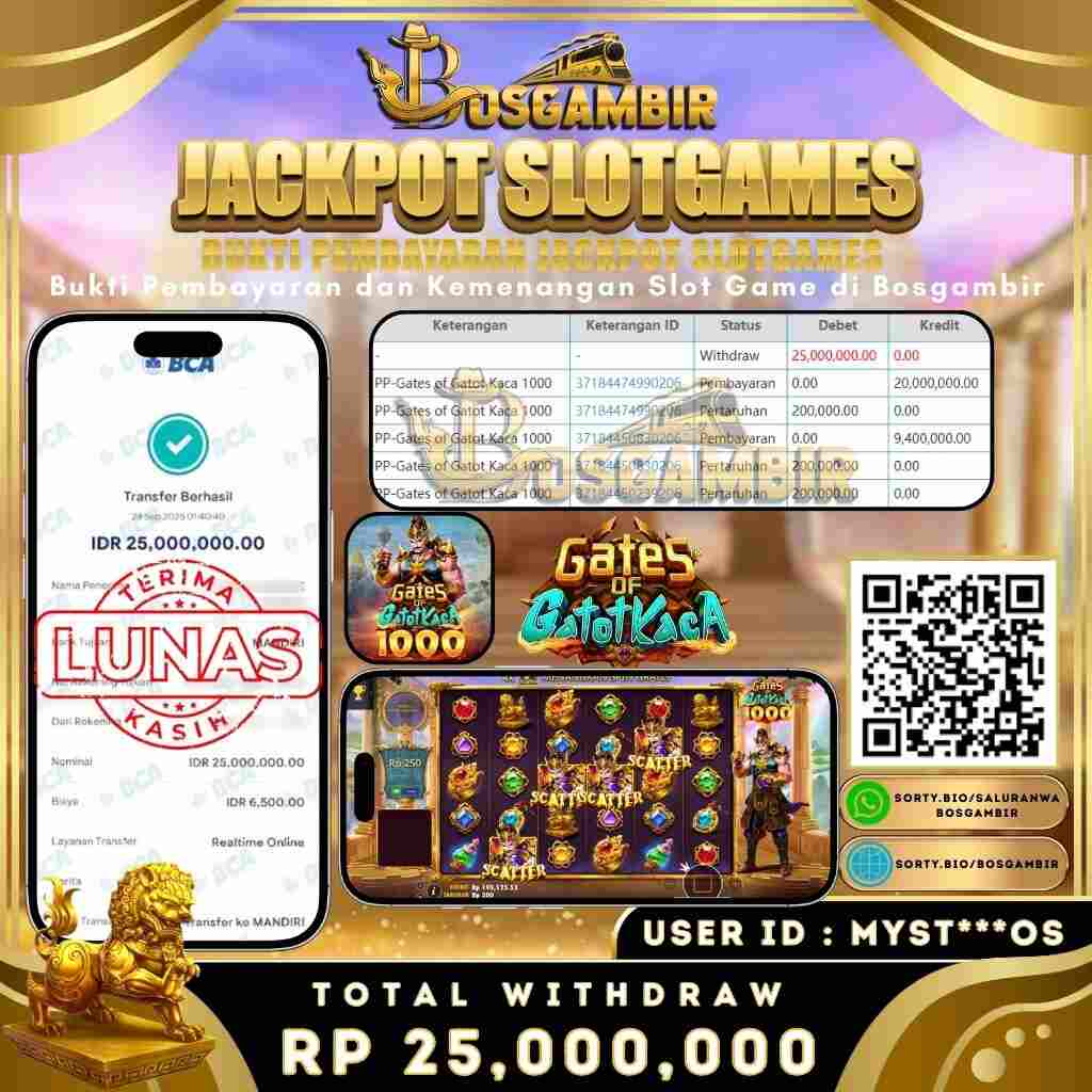 Selamat kepada User ID MYST***OS yang berhasil meraih jackpot senilai Rp25.000.000 dari Slot Game PP – Gates of Gatot Kaca 1000 di BOSGAMBIR. Ini menjadi bukti nyata bahwa bermain di BOSGAMBIR tidak hanya menghadirkan hiburan, tetapi juga peluang nyata untuk meraih cuan besar melalui sistem yang fair dan transparan. Semua kemenangan dibayarkan penuh tanpa potongan, langsung cair ke rekening, serta dijamin keamanannya. Bergabung di BOSGAMBIR berarti menjadi bagian dari komunitas pemain yang memahami di mana peluang kemenangan besar selalu terbuka lebar. Kunjungi situs resmi melalui link alternatif di https://www.bosgambir.org dan buktikan sendiri kesempatan meraih jackpot berikutnya.