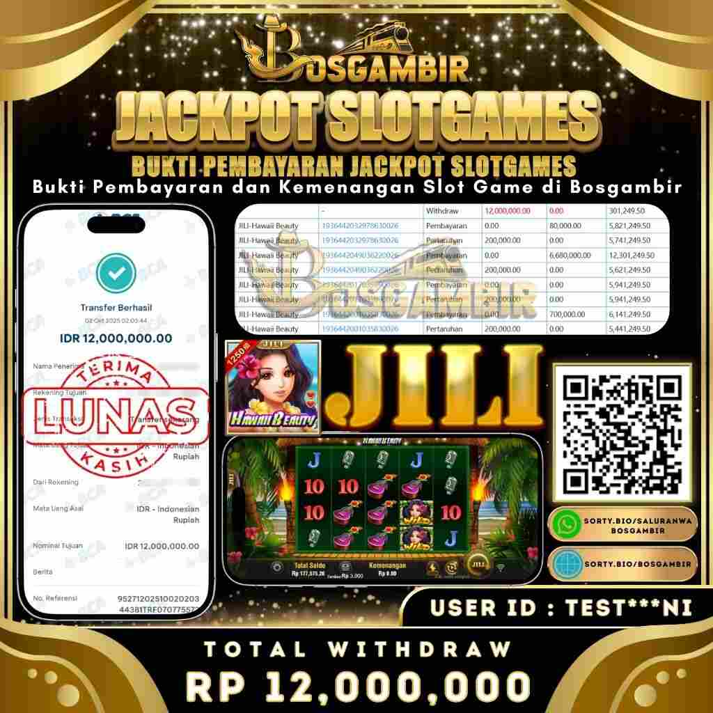 Kemenangan kembali mengalir di BOSGAMBIR! Kali ini UserId TEST***NI berhasil meraih Kemenangan sebesar Rp12.000.000 dari permainan Slot Game JILI – Hawaii Beauty. Proses withdraw berjalan mulus: hanya dalam 5–10 menit setelah formulir penarikan diajukan, tim BOSGAMBIR langsung mencairkan seluruh dana kemenangan ke rekening pemenang. Bukti pembayaran yang kami sajikan merupakan dokumen resmi dan valid yang diperoleh langsung dari notifikasi transaksi bank tujuan. Kami mengucapkan terima kasih kepada pemenang yang telah mempercayakan BOSGAMBIR sebagai bandar slot dan togel online yang terbukti membayar lunas tanpa potongan. Di tengah banyaknya platform tidak jelas, BOSGAMBIR tetap konsisten memberikan pelayanan transparan, cepat, dan aman—karena bagi kami, kepercayaan member adalah segalanya. Berapapun nilai kemenangan Anda, kami pastikan cair 100%. Jangan lewatkan kesempatan Anda berikutnya—mainkan sekarang hanya di https://www.bosgambir.org