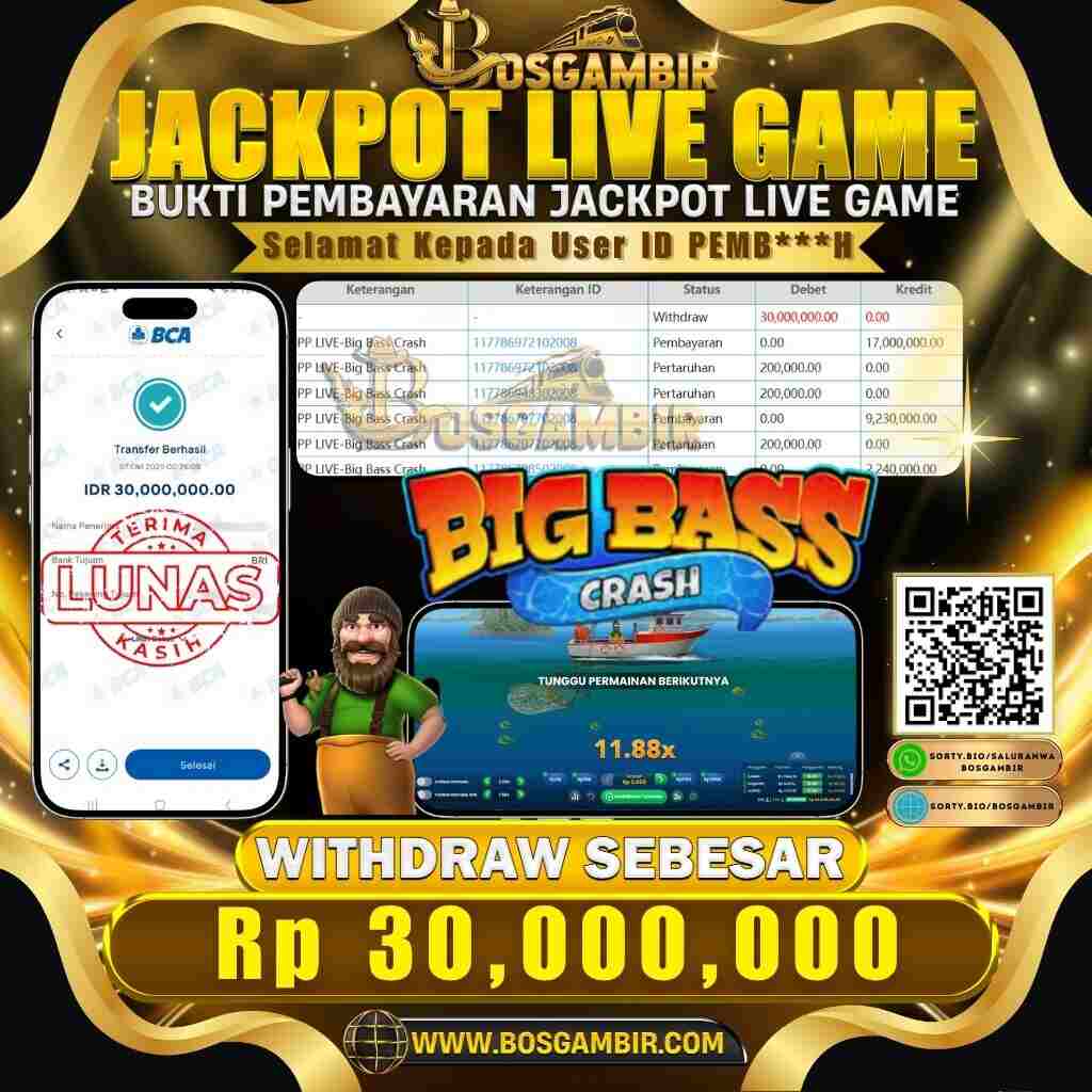 Bukti Pembayaran Jackpot Livegame PP LIVE-Big Bass Crash Rp 30,000,000