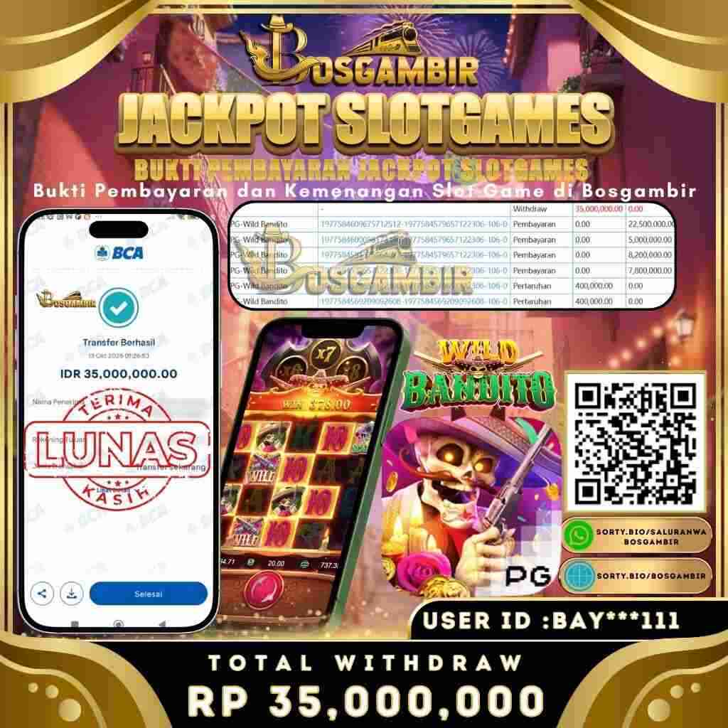 Bukti Pembayaran Jackpot Slot Game PG-Wild Bandito Rp 35,000,000