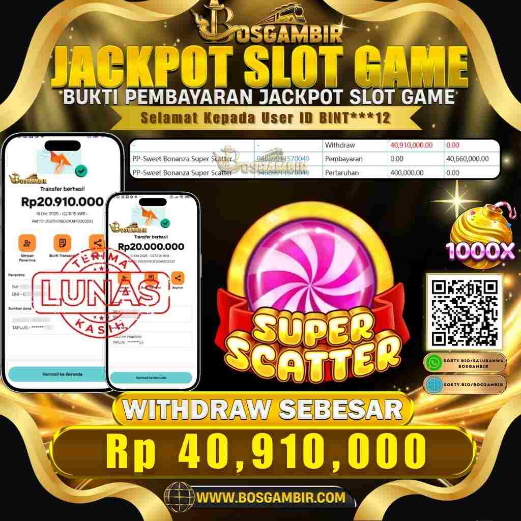 Selamat kepada UserId: BINT***12 yang sukses meraih kemenangan luar biasa sebesar Rp40.910.000 dari permainan Slot Game PP – Sweet Bonanza Super Scatter di BOSGAMBIR! Tak lama setelah mengajukan penarikan dana, dalam waktu hanya 5–10 menit, tim BOSGAMBIR langsung memproses dan mentransfer seluruh kemenangan ke rekening pemenang hingga dana berhasil dicairkan. Bukti pembayaran yang kami tampilkan merupakan dokumen resmi dan sah yang diambil langsung dari notifikasi transaksi bank tujuan. Terima kasih kepada pemenang yang telah mempercayakan BOSGAMBIR sebagai bandar terpercaya yang selalu membayar lunas tanpa potongan. Masih ragu? Di tengah banyaknya situs judi online yang tidak jelas, BOSGAMBIR hadir sebagai platform slot dan togel online yang transparan, andal, dan responsif—karena berapa pun jumlah kemenangan Anda, pasti kami bayarkan 100% tanpa drama. Jangan lewatkan kesempatan emas Anda berikutnya, main dan menang hanya di https://www.bosgambir.org