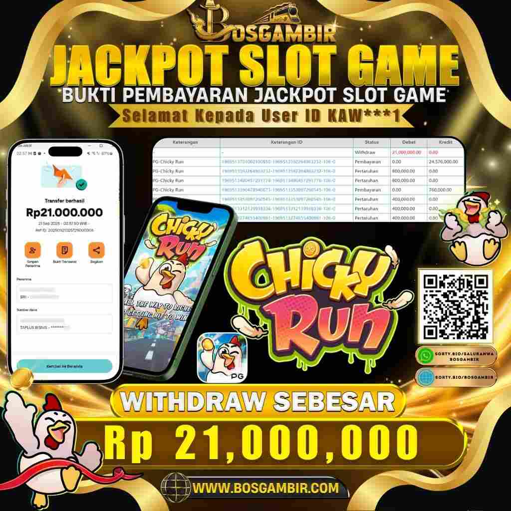 Selamat kepada UserId : KAW*1 yang berhasil meraih kemenangan besar Rp21.000.000 di permainan SLOT GAMES PG – Chicky Run, di mana setelah mengisi formulir withdraw hanya dalam waktu 5–10 menit pihak BOSGAMBIR langsung memproses dan mentransfer dana ke rekening pemenang dengan bukti pembayaran resmi dari bank tujuan; hal ini kembali membuktikan bahwa BOSGAMBIR adalah bandar terpercaya yang selalu membayar kemenangan member hingga lunas tanpa potongan, jadi tidak perlu ragu lagi karena di sini setiap kemenangan berapapun akan tetap dibayar penuh, login sekarang di link resmi https://www.bosgambir.org