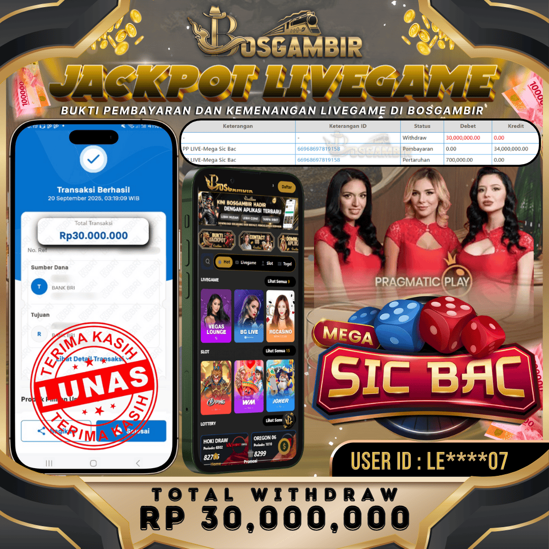 Selamat kepada User ID: LE****07 yang berhasil membawa pulang kemenangan luar biasa sebesar Rp30.000.000 dari permainan Live Game PP Live – Mega Sic Bo di Bosgambir. Di sini, setiap permainan bukan hanya sekadar hiburan, melainkan peluang nyata untuk meraih cuan dengan sistem fair play dan peluang menang yang kompetitif. Semua kemenangan dibayar penuh tanpa potongan dan tanpa kendala, karena Bosgambir selalu menjunjung tinggi transparansi serta kejujuran dalam setiap transaksi. Jangan lewatkan kesempatan Anda untuk ikut membuktikan sendiri sensasi jackpot besar dan pengalaman terbaik hanya di https://www.bosgambir.org