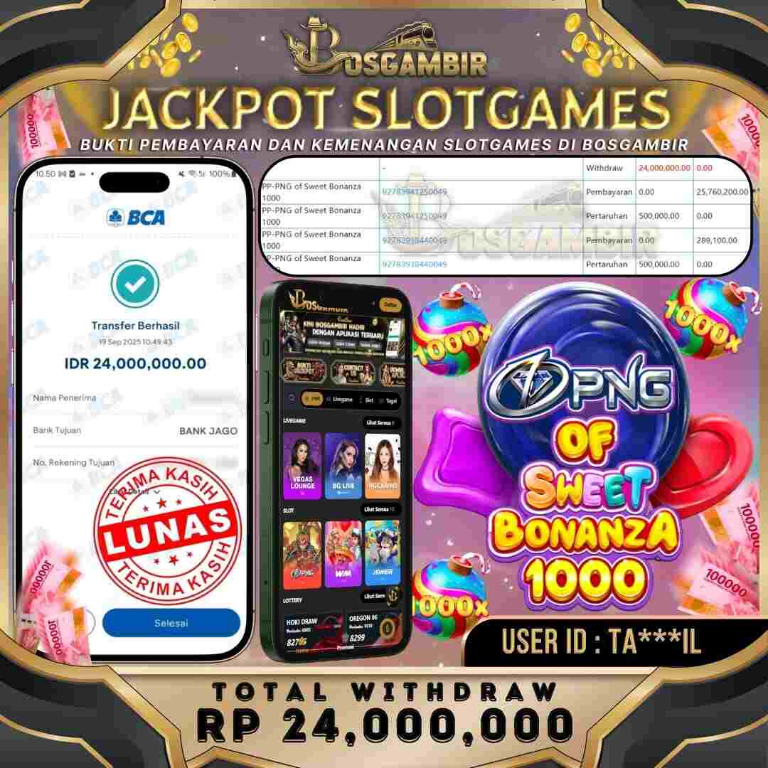 Selamat kepada User ID TA***IL yang sukses membawa pulang jackpot luar biasa senilai Rp24.000.000 Dari Permainan Slot Game PP – PNG Of Sweet Bonanza 1000 di Bosgambir! Platform gaming online terpercaya ini kembali membuktikan komitmennya dengan membayar setiap kemenangan secara penuh, tanpa potongan dan tanpa batas. Di Bosgambir, setiap putaran adalah peluang emas, tanpa tipu-tipu dan tanpa rekayasa. Ayo buktikan sendiri keberuntunganmu dan nikmati sensasi bermain yang seru sekaligus menguntungkan. Terima kasih kepada seluruh pemain setia yang terus memilih Bosgambir sebagai tempat bermain nomor satu.Kini giliran Anda yang membuktikan sendiri, rasakan jackpot besar dan pengalaman terbaik hanya di https://www.bosgambir.org