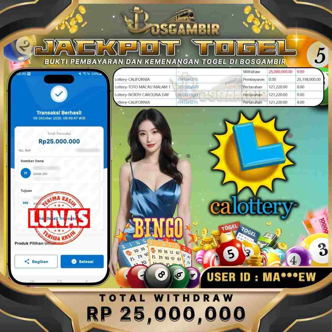 Bukti Pembayaran Jackpot Togel Lottery-CALIFORNIA Rp 25,000,000