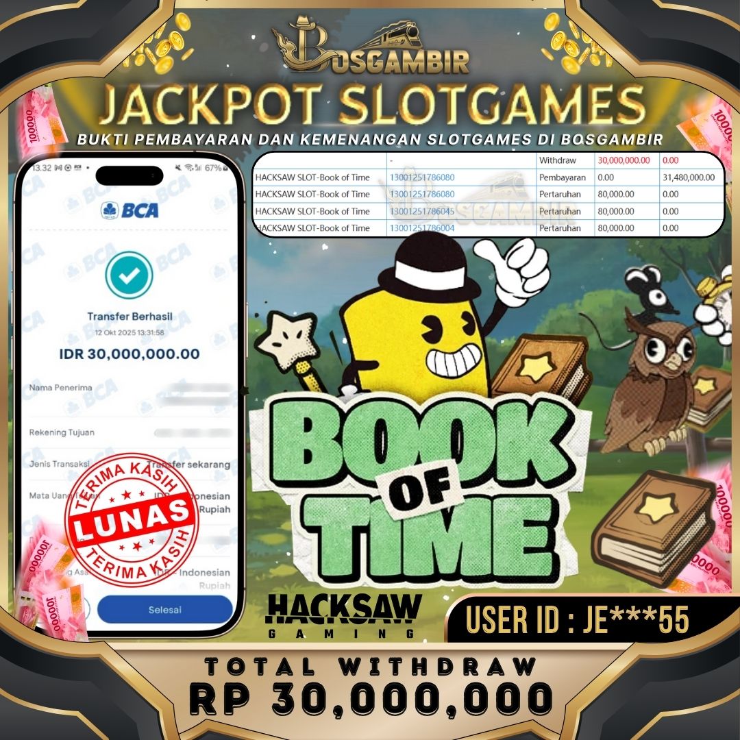 Bukti Pembayaran Jackpot Slot Game HACKSAW SLOT-Book Of Time Rp 30,000,000