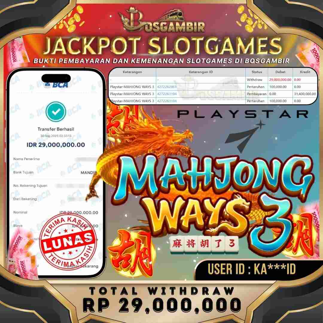 Bukti Pembayaran Jackpot Slot Game PG–MAHJONG WAYS 3 Rp 29,000,000