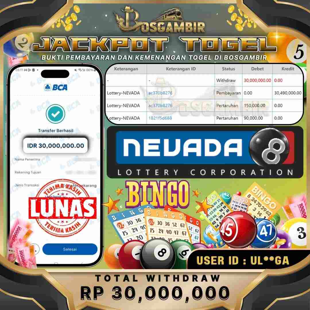 Bukti Pembayaran Jackpot Togel Lottery-NEVADA Rp 30,000,000