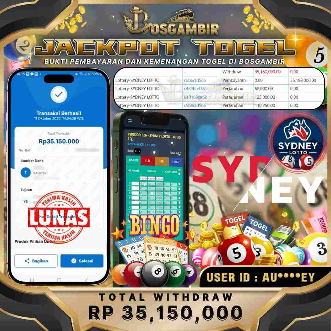 Bukti Pembayaran Jackpot Togel Lottery–SYDNEY LOTTO Rp 35,150,000