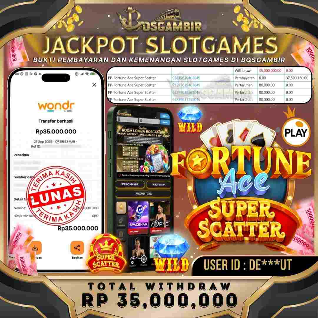 Bukti Pembayaran Jackpot Slot Game PP-Fortune Ace Super Scatter Rp 35,000,000