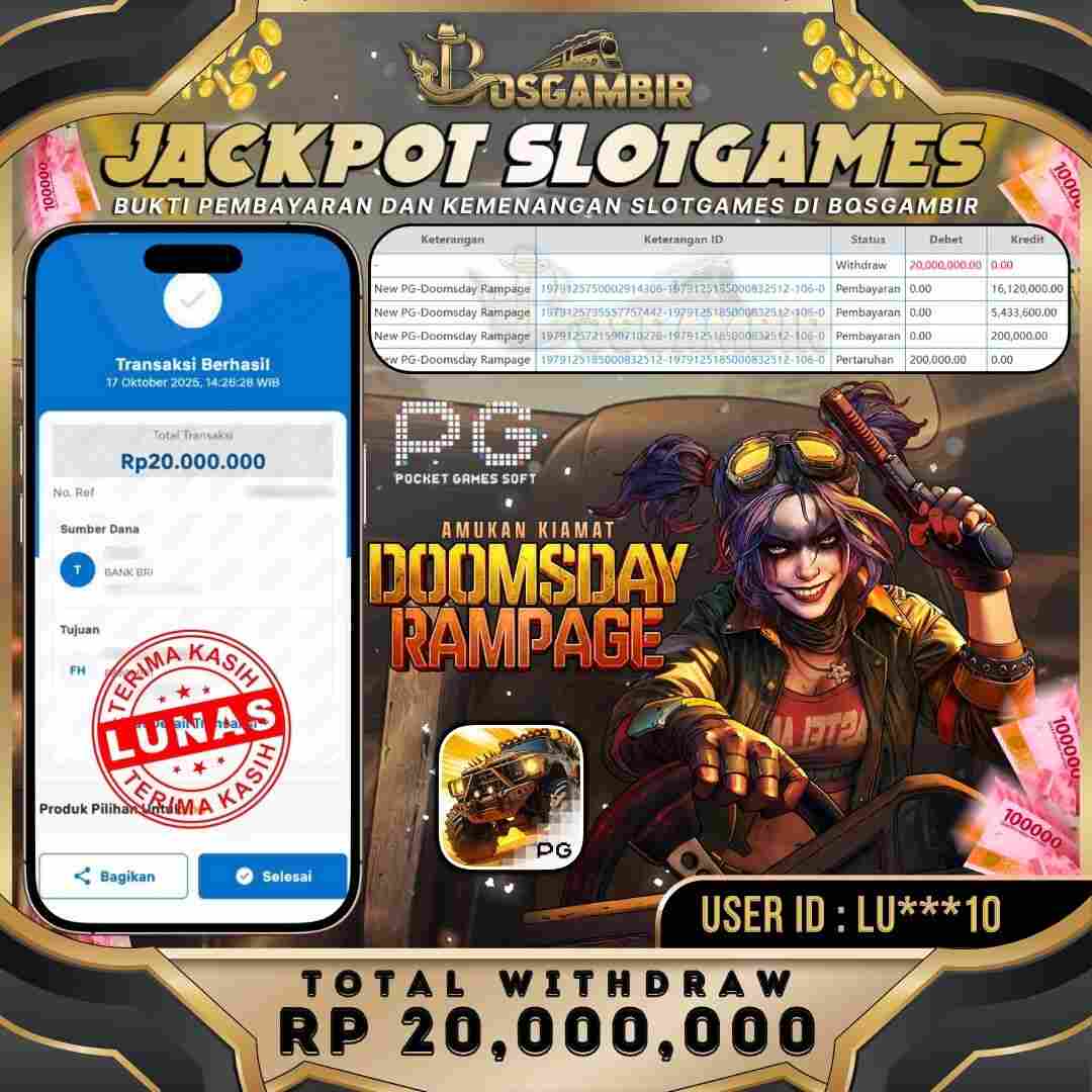 Bukti Pembayaran Jackpot Slot Game PG–Doomsday Rampage Rp 20,000,000
