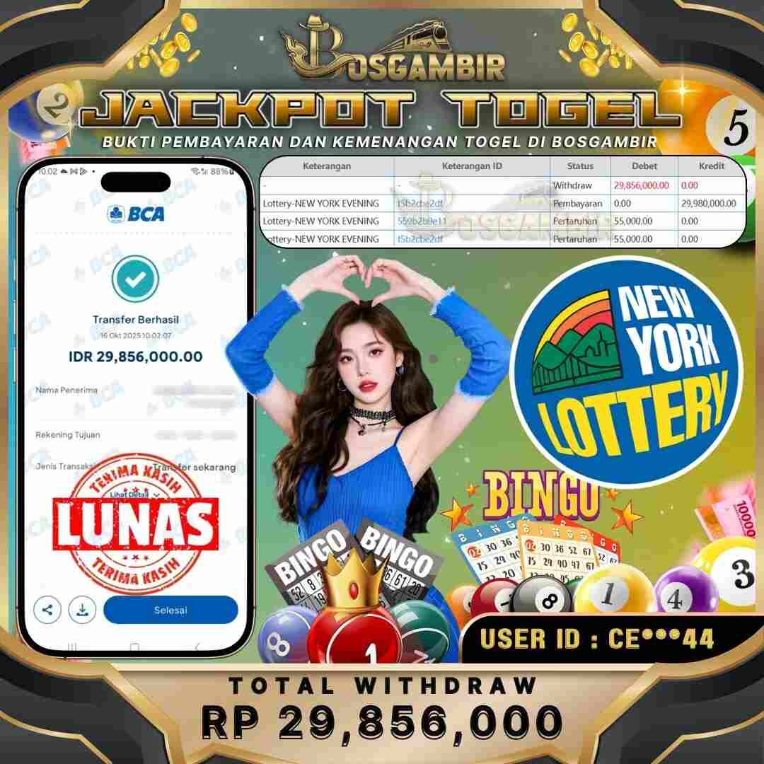 Bukti Pembayaran Jackpot Togel Lottery-NEW YORK EVENING Rp 29,856,000