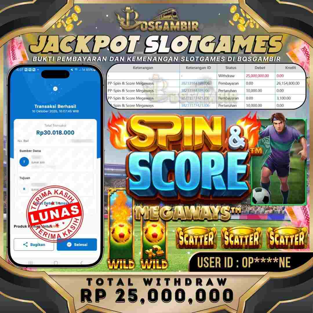 Bukti Pembayaran Jackpot Slot Game PP-Spin&Score Megaways Rp 25,000,000
